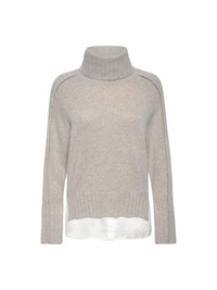 - Runs true to size - Fold over turtleneck - Self-fringe trim along the sleeves - Raglan long sleeves - Ribbed trim neck, cuffs and hem - Curved hem, hammered satin partial underlayer - 70% Wool/30% Cashmere - Dry clean recommended - Imported - Model is 5'9" and is wearing a size Small We combined two of our best-selling styles into one special sweater that is sure to become an instant signature piece. Our most-loved Jolie Turtleneck is now in an effortless Looker silhouette. Self-fringe trim details add dimension to the long raglan sleeves, a fold over turtleneck which can also be worn scrunched down and curved hem, hammered satin partial underlayer, visible at the hem and cuffs, keep you looking cozy chic. With split sides for added ease and wide ribbing on the cuffs and hem, this relaxed, slightly oversized sweater will be the one Looker you turn to as the seasons change.