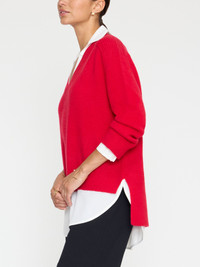 - Oversized (take a size down if you prefer a closer fit) - V neck - Dropped shoulders - Curved high low hem - 70% Wool/30% Cashmere with 100% Polyester Georgette partial shirting underlayer - Imported - Dry clean recommended - Model is 5'9" and is wearing a size Small Handpicked for Oprah's Favorite Things 2024 Our bestselling sweater for over 10 years, The Looker Layered V-Neck makes getting dressed and looking effortlessly chic so easy. A luxurious, cashmere blend sweater is pre-layered over a recycled georgette underlayer which creates the illusion of two pieces in one. The shirting collar, cuffs and hem are attached on the inside of the knit layer, so The Looker remains lightweight and trans seasonal, while the slightly oversized fit makes it cozy. The mixed media sweater that completes any look, The Looker is the one piece you will want to wear every day, everywhere.