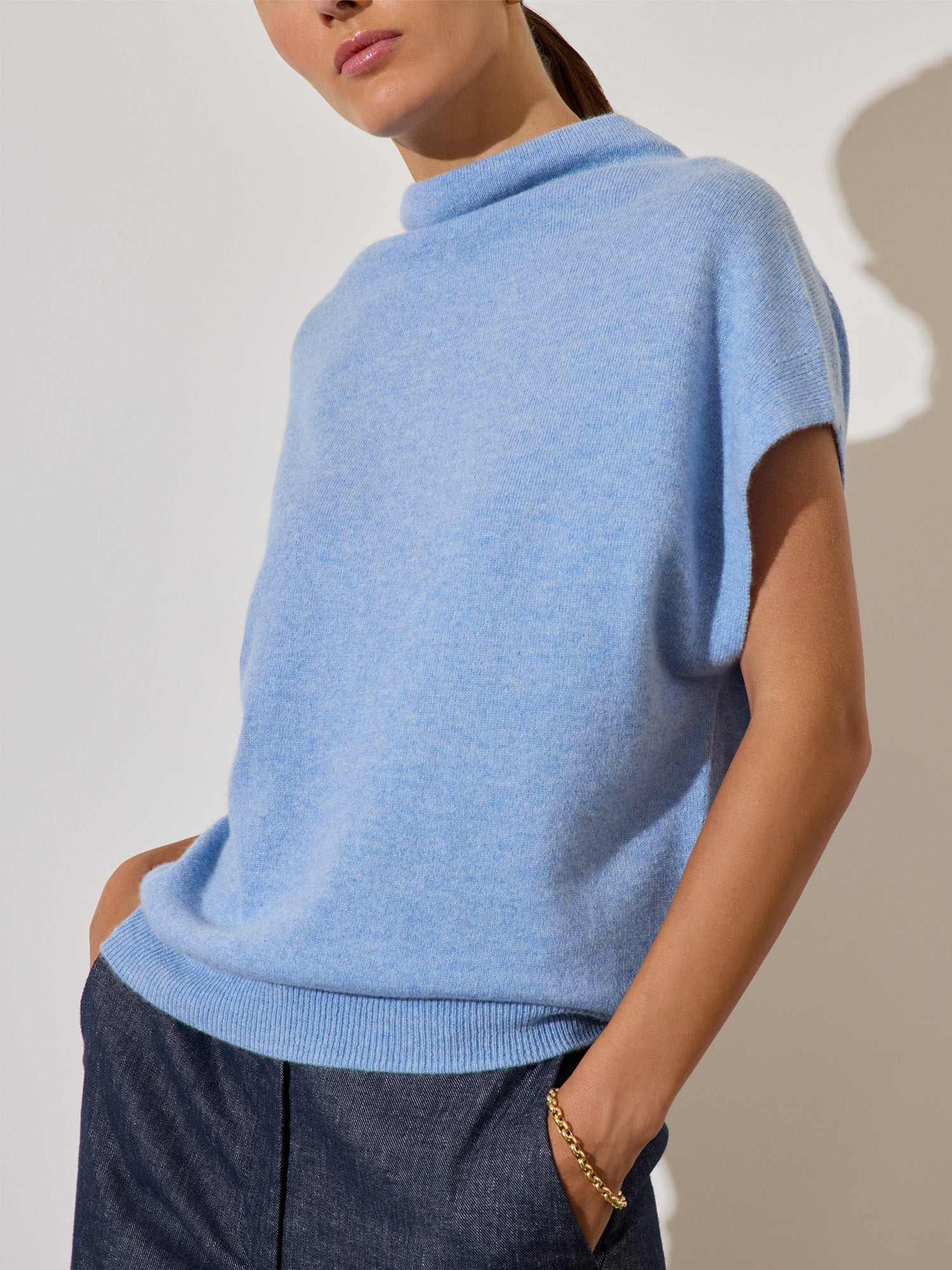 - Runs true to size - Relaxed fit - Draped funnel neckline - Sleeveless - Rounded dropped shoulders - Ribbed back neck, arm opening, and hem - Center back seam detail - Straight hem - 100% Cashmere - Imported - Model is 5'9" and is wearing a size Small Our Morten Funnel Neck Top is quintessentially Brochu Walker. In a luxe 100% cashmere, this modern vest/top is designed to be worn on its own or layered as a vest. Featuring a draped funnel neck, rounded dropped shoulders and a relaxed shape, this sleeveless sweater is the epitome of effortlessness and versatility. Part of our ‘Kinder To The Environment’ collection, it is made RWS-certified, traceable yarn which means it adheres to stringent animal welfare standards.