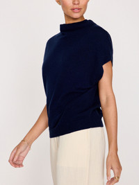 - Runs true to size - Relaxed fit - Draped funnel neckline - Sleeveless - Rounded dropped shoulders - Ribbed back neck, arm opening, and hem - Center back seam detail - Straight hem - 100% Cashmere - Imported Our Morten Funnel Neck Top is quintessentially Brochu Walker. In a luxe 100% cashmere, this modern vest/top is designed to be worn on its own or layered as a vest. Featuring a draped funnel neck, rounded dropped shoulders and a relaxed shape, this sleeveless sweater is the epitome of effortlessness and versatility. Part of our ‘Kinder To The Environment’ collection, it is made RWS-certified, traceable yarn which means it adheres to stringent animal welfare standards.
