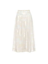 - Runs true to size - Relaxed fit - Stitched-down pleats - Internal elasticized waistband - Side zipper with hook and bar closure - Length 31” - Fully lined - Pearlized Liquid Satin - 100% Polyester - Imported - Model is 5'9" and is wearing a size Small In a dramatic, pearlized liquid satin, our Neve Skirt is feminine perfection. This skirt features a relaxed silhouette that is complemented by stitched-down pleats that release to create a full skirt. Modern yet always sensual, Neve has an internal elasticized waistband with an exposed raw edge detailing above for added comfort and a full lining for a demure sensibility.