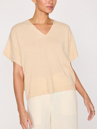 - Runs true to size - T-shirt silhouette - Relaxed fit - Vee neckline with notch split detail - Light ribbing on the neckline, sleeves and hem - Straight hem - Signature center back seam detail - 100% Cashmere - Imported We love our Ophi Vee…the perfect 100% cashmere t-shirt to be layered now and worn on its own later. In a relaxed fit with short sleeves, it feels modern, while the subtly of the design feels sensual and feminine. No bells and whistles needed…our Ophi cashmere sweater is simplicity at its finest. Part of our ‘Kinder To The Environment’ collection, it incorporates RWS-certified, traceable yarn which means it adheres to stringent animal welfare standards.