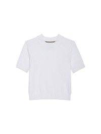 - Runs true to size - Shrunken fit - Hits at the high part of the hip - Crewneck with ribbed trims - Short sleeves with ribbed cuffs - Straight, ribbed hem - Signature center back seam detail - Italian yarn - 73% Cotton/23% Polyamide/3% Elastane - Imported - Model is 5'9" and is wearing a size Small The perfect sweater-tee shirt, our Taylor Top has a chic shrunken fit with a little stretch for comfort. This short sleeve sweater features a ribbed crewneck, cuffs and hem and our signature center back seam…assured to be your new everyday essential and an instant Brochu Walker classic.