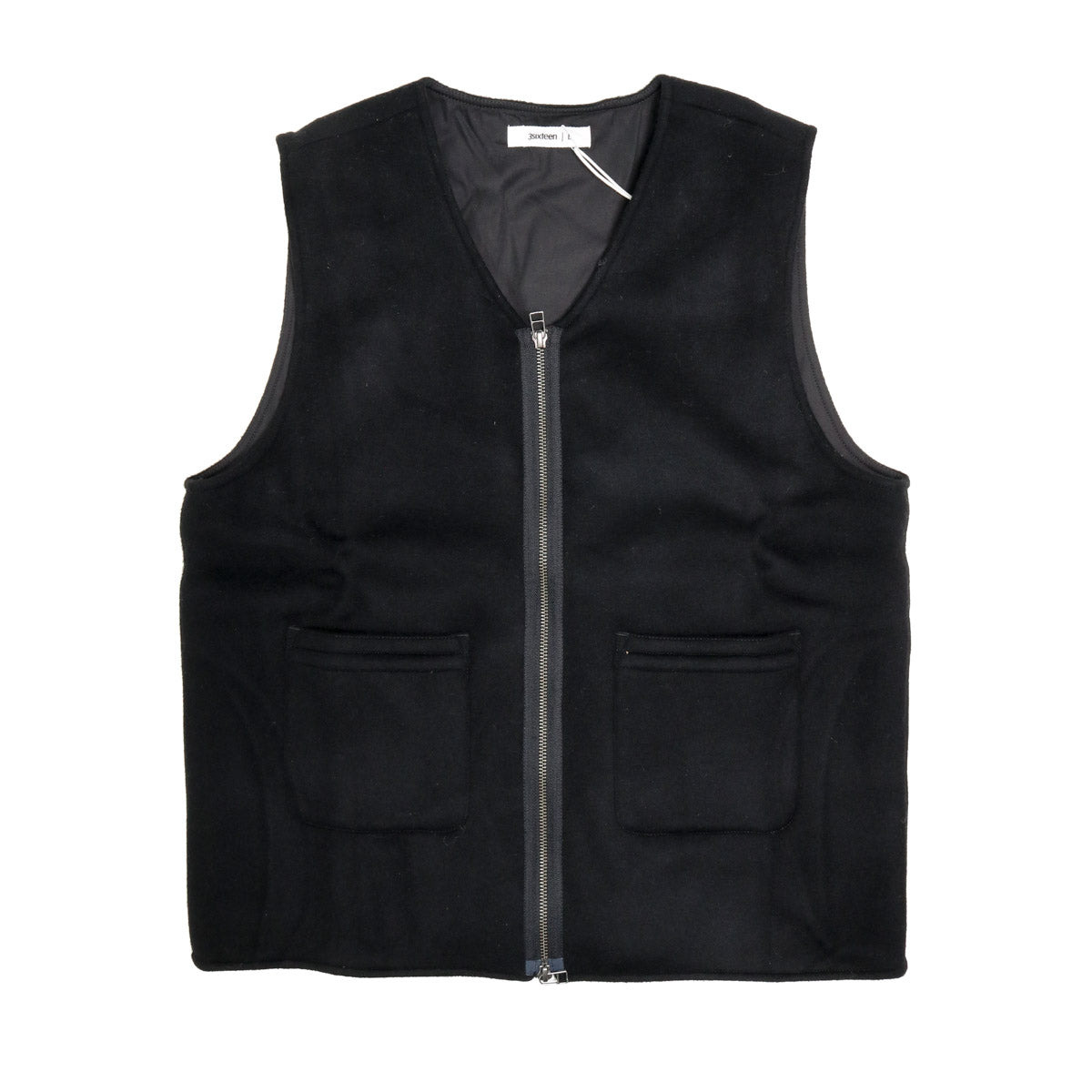 This FW24 version of 3sixteen's seasonal layering vest features an elegantly soft wool/cashmere fabric lined with tonal black cotton cloth. The vest is finished with a gunmetal YKK 2-way zipper and double front pockets. - 90% wool 10% cashmere - 100% black cotton lining - Two front waist pockets - 2-way gunmetal zip closure - V-neck collar - Made in India
