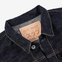 Iron Heart's interpretation of the “Type II” jacket that Levi’s released in 1953. Slightly longer in the body and less boxy than the original Type II, this Iron Heart version is constructed from 16oz slubby selvedge denim. This deep indigo selvedge denim has a really uneven hand on both the face and the reverse (think off the scale loom-chatter), but at the same time it is incredibly soft and comfortable to wear. - Made in Japan - Type II jacket - 16oz Japanese slubby selvedge denim - Indigo rope dyed warp and weft - will fade with wear and washing - Contrast stitching and bar tacks - Iron Heart branded tack buttons - Two chest flap pockets with tack button fastenings - Single and double needle stitch construction - Internal felled seams - Selvedge placket ID - Hem cinches with tack button fastenings - Selvedge placket ID - Poly/cotton constructional stitching - Sanforized and one-washed - no shrinkage to be expected