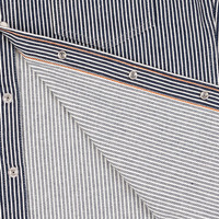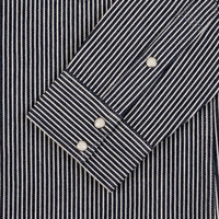Released in 2009, the 7th Iron Heart shirt designed by Haraki san and now the longest in continuous production. The classic western shirt in 12oz sulphur dyed hickory stripe cotton twill, construction includes double and triple chainstitch and - being sulphur dyed - the fabric will fade. - Made in Japan - Western shirt - 12oz Japanese hickory stripe cotton twill - 100% cotton - Indigo sulphur dyed warp / natural weft - will fade with wear and washing - Grey stitching with red bar tacks - White Permex snaps - Western-style flap patch pockets with snap fastenings - Single, double and triple needle stitch construction - Western-style back and front yokes - Felled internal seams - Orange bobbin thread - One-washed - no shrinkage expected