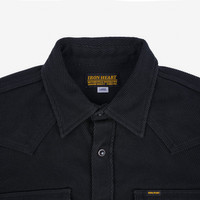 - Made in Japan - Western shirt - 14oz (approx.) Japanese Kersey fabric - 100% cotton - Reactive dyed warp and weft - no colour loss to be expected - Tonal stitching - Black Iron Heart logo’d Permex snaps - Button at the collar - Western-style flap patch pockets with snap fastenings - Single, double and triple needle stitch construction - Western-style front and back yokes - Felled internal seams - Brown bobbin thread - One-washed - no shrinkage expected