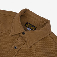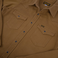- Made in Japan - Western shirt - 14oz (approx.) Japanese Kersey fabric - 100% cotton - Reactive dyed warp and weft - no colour loss to be expected - Tonal stitching - Black Iron Heart logo’d Permex snaps - Button at the collar - Western-style flap patch pockets with snap fastenings - Single, double and triple needle stitch construction - Western-style front and back yokes - Felled internal seams - Brown bobbin thread - One-washed - no shrinkage expected