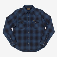 ULTRA HEAVY FLANNEL OMBRÉ CHECK WESTERN SHIRT - NAVY/BLACK