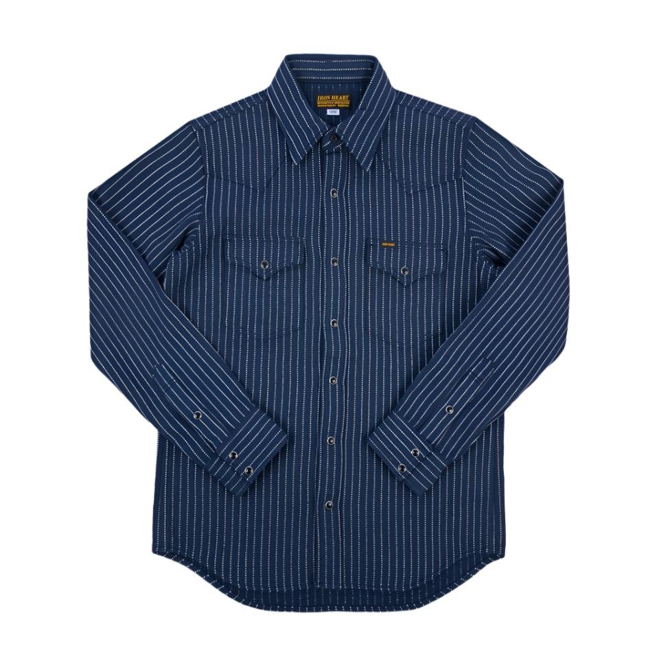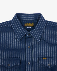 IHSH-424-IND 8.5oz Herringbone Stripe Western Shirt - Indigo