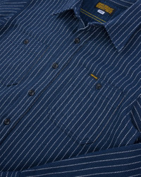 12OZ ULTRA HEAVY FLANNEL CHALK STRIPE WORK SHIRT - NAVY
