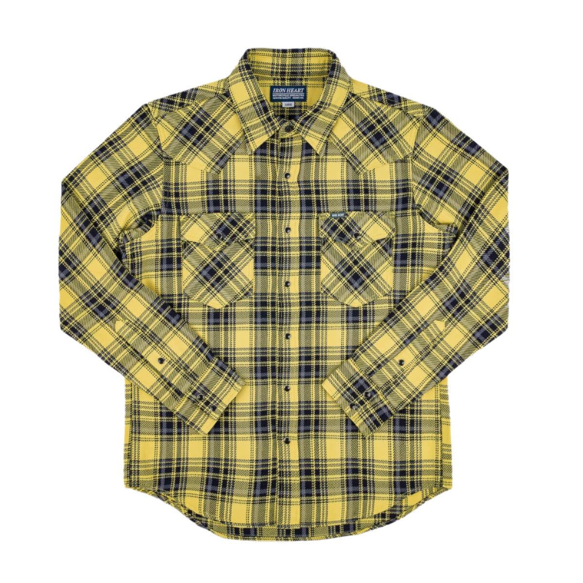 IHSH-411-YEL 9oz Selvedge Indigo Check Flannel Western Shirt - Yellow