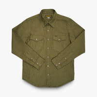 These yokeless western CPO shirts are cut from 8oz Japanese whipcord. The origins of whipcord, or “Jungle Cloth,” are rooted in military apparel—a tightly woven fabric renowned for its durability and windproofing properties. The tough 8oz whipcord used to construct this shirt is woven using long-fibre combed yarns, creating a high-density, lightweight fabric with a smooth feel and silky appearance. As a CPO cut, this shirt offers a little more length in the body than Iron Heart's standard western cut, with oversized copper snap fastenings and additional hand-warmer pockets for versatility. For this model, we’ve chosen to omit the western-style front yokes and include only a straight rear yoke for a military-inspired, utilitarian look. - Made in Japan - Yokeless western-style CPO shirt - 8oz Japanese whipcord - 100% cotton - Reactive dyed warp and weft yarns - no colour loss expected - Tonal stitching - Oversized Iron Heart branded copper snaps - Western-style flap patch pockets with snap fastenings - Twill-lined side hand warmer pockets - Single and double needle stitch construction - Yokeless front and straight rear yoke - Felled internal seams - Red bobbin thread - One-washed - no shrinkage expected