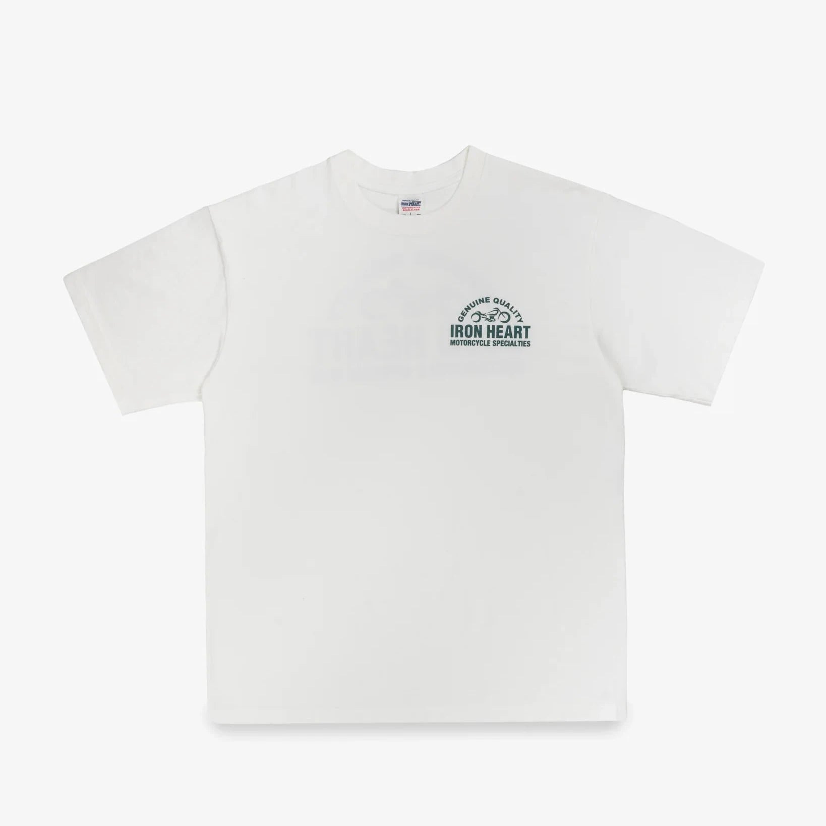 Iron Heart's 7.5oz loopwheel cotton t-shirts are knitted in Wakayama, Japan, on vintage "tsuriam-ki" loopwheeling machines, in one of only two factories in the world that still manufacture traditional loopwheeled fabrics. This low-tension, circular knitting technique produces very soft, tubular pieces of fabric, allowing for a garment to be constructed without any side seams, and producing a jersey that feels, looks, and wears better. Cut, sewn, and screenprinted in Tokyo's historic Shitamachi ("Old Town") district. Available in white, black, and sax blue. - 100% cotton - 7.5oz loopwheeled jersey - Screenprinted Iron Heart chest & back logos - Knit in Wakayama, Japan on vintage tsuriam-ki loopwheelers - Sewn and screenprinted in Shitamachi, Tokyo
