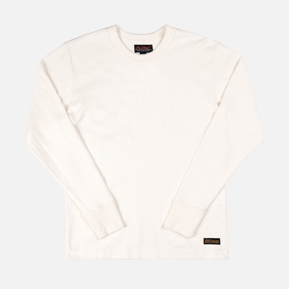 Haraki, the man behind Iron Heart, designed this as a long sleeved t-shirt, but calling it a t-shirt is misleading. At 11oz this is a seriously heavy and substantial cotton knit; from a distance it does look like a t-shirt, but once worn it feels so much more. - Made in Japan - 11oz 100% cotton knit fabric - Long sleeved crew neck sweater - Ribbed collar and cuffs - Size Large sweater weighs just over 1.1lbs (0.5kg) - One washed, so minimal or no shrinkage to be expected
