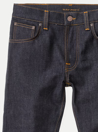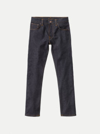 Jeans with a straight slim fit made in organic comfort stretch denim. With its slim fit, mid waist and straight leg Grim Tim is one of our most popular slim fits. This fabric is a 12.75 oz dry comfort stretch denim. The yarns have been yarn-dyed prior to the weaving to keep the yarn-core white. An aspect that allows for some serious break-in potential. We recommend 6 months of hard, every day, wear before the first wash, if not longer. This way you will end up with a beautiful pair of worn-in jeans. It sure is a long time, however, it's only a recommendation. As long as you give them love, the result will be great - Organic cotton - 12.75 oz comfort stretch denim - Navy back pocket embroidery - Orange threads on all other seams - Copper trims - Button fly - Jacron patch - Slim fit - Mid waist - Straight leg - Slim leg opening - 99% Cotton / 1% Elastane - Made in Italy