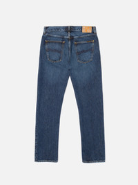 Regular fit jeans with a straight leg in a dark blue wash with subtle wear. Although dark, these jeans got it all. They span an impressive array of indigo hues - from the darkest of the dark to muted bright blue highlights. Abraded areas add softness while the unabraded ones add a rugged marble texture. - 100% organic cotton - 14.9 oz. rigid denim - Tobacco thread at seams - Navy back pocket embroidery - Copper trims - Zip fly - Jacron patch - Regular fit - Mid waist - Straight leg - Regular leg opening