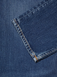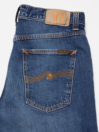 Slim fit jeans with a slim leg in a dark blue wash featuring authentic wear. Crafted from remarkably textural stretch denim, the wash exudes a rich yarn slub character, showcasing both a salt 'n pepper grain and a subtle crosshatch. Highlighting and slightly warm abrasions add an authentically worn-in look to these dark blue beauties. - Organic cotton - 13 oz. comfort stretch denim - Orange thread at seams - Copper trims - Button fly - Jacron patch - Regular Fit - Mid Waist - Slim Leg - Slim Leg Opening