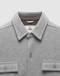 This classic overshirt is crafted from boiled merino wool with a dense, hairy texture. Featuring a standard fit, with full-cut sleeves and torso to provide versatility for layering. Designed with a pointed collar, flap chest pockets, corozo logo buttons, on-seam side pockets, adjustable cuffs, and a scooped hem. - RC-8036 - 100% merino wool - 100% cotton lining - Standard fit - Pointed collar - 24L corozo logo buttons - Set-in sleeves - Flap chest pockets - On-seam side pockets - Corozo button cuffs - Scooped hem - Lined collar, placket and cuffs - Made in China