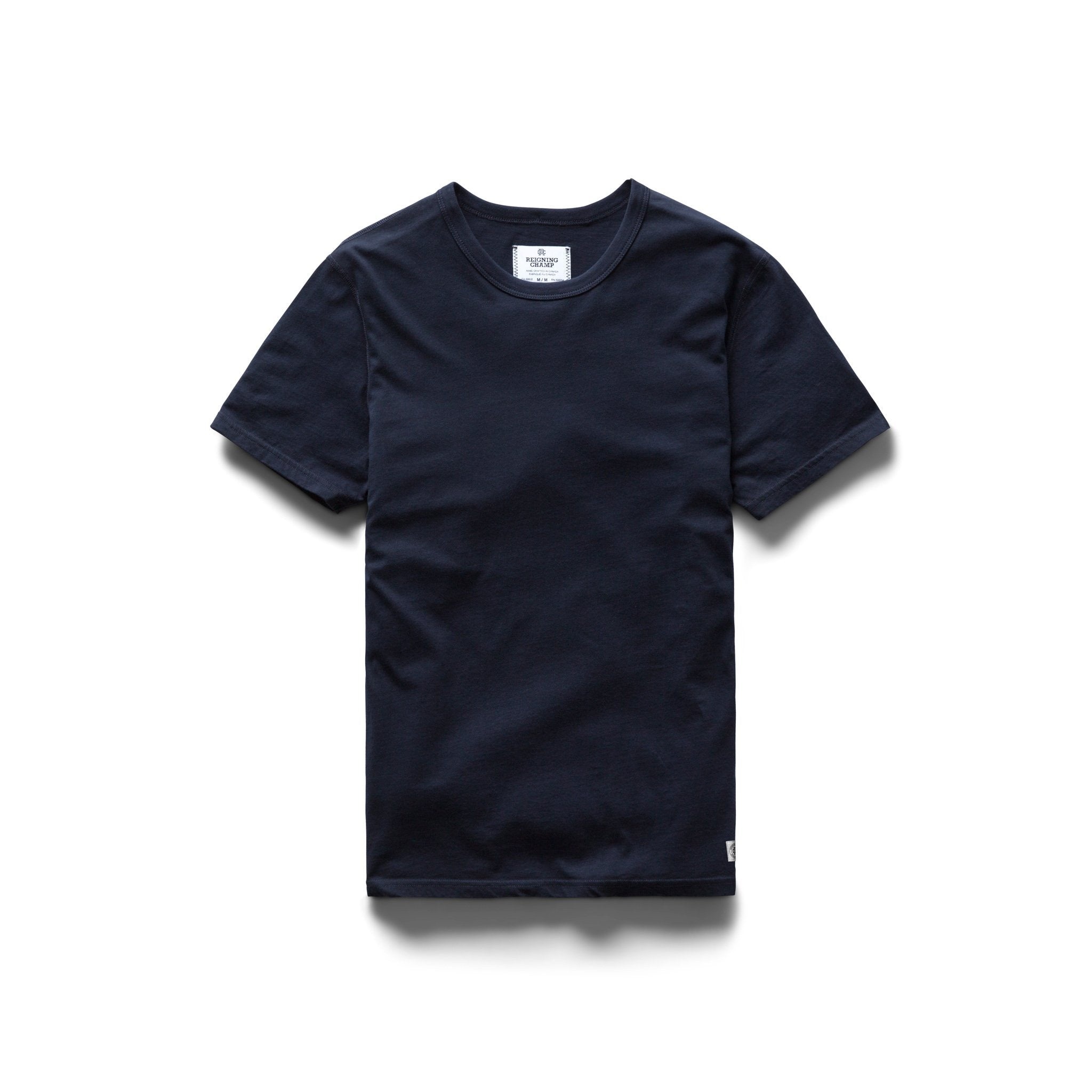 Reigning Champ's classic T-shirt is handcrafted in Vancouver from premium cotton with a versatile year-round weight. Designed with a trim athletic fit, this style features a durable rib-bound collar, set-in sleeves, and smooth flatlock seams. - RC-1028-7 - 100% cotton jersey - Durable - Maintains shape - Preshrunk - Flatlock seams - Set-in sleeves - Rib-bound collar - Handcrafted in Canada