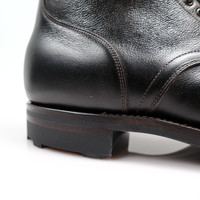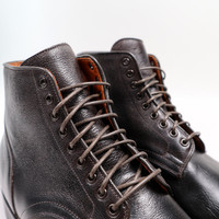 All our Viberg Service Boots are on a single E width, we suggest sizing down one full size from your standard sneaker size or brannock measurement. Consider sizing down a half size if you have a wide foot. Viberg's Service Boot is directly based on their original model, first produced in 1931. A similar pattern was also used by multiple nations as a standard issue military boot during WWII, however Viberg's quintessential Service Boot is modeled after the Canadian military's WWII Service Boot pattern. C.F. Stead's Kudu is sustainably harvested (not farmed) from wild South African Antelope populations, with each hide reflecting the harsh conditions of life on the African Savannah. The result is a leather with a unique combination of softness & durable strength, as well as the truckloads of texture that is inherent to the unique grain of Kudu hides, further exemplified by the scars and natural characteristics of each unique hide. This is Stead's Naked Kudu; a soft, full-bodied Kudu that has been tanned with a fully-aniline finish, giving it an incredible depth of colour and texture, natural pull-up characteristics, and a subtle shine that can be polished up, if so desired. - C.F. Stead Naked Kudu - 2030 last - Vegtan lined upper - 9 #2 coffe eyelets - Leather structured toe - Antique leather midsole - Black Dainite Ridgeway soles and heels - Traditional resoleable Stitchdown construction - Small batch, limited run production made at Viberg's factory in Victoria, BC - Includes flat and round waxed cotton laces