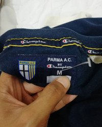 Champion X Parma Fc Size on tag : M Brand : Champion Armpit to armpit : 21" Top to bottom : 26” Material : Cotton Colour : Navy Blue Condition : GOOD CONDITION