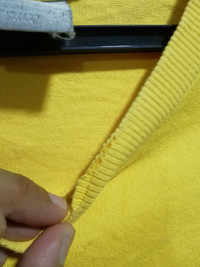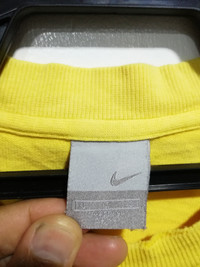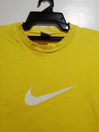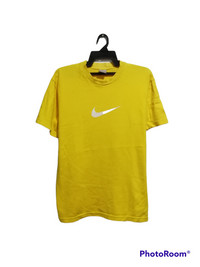 Nike Center Logo Size on tag : L Brand : nike Armpit to armpit : 22" Top to bottom : 28" Material : Cotton Colour : Yellow Condition : have defect at neck