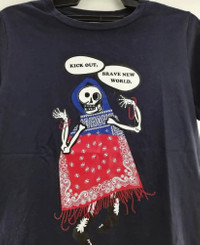 Number nine Bandana Kick out Brave New World Size on tag : m Brand : Number Nine Armpit to armpit : 19" Top to bottom : 25” Material :Cotton Colour : Navy Blue Condition : GOOD CONDITION