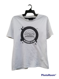 Number Nine Burger Size on tag : M Brand : Number Nine Armpit to armpit : 20" Top to bottom : 26" Material : Cotton Colour : White Condition : print crack