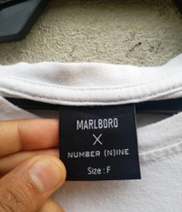 Number Nine X Marlboro RETHINKING CONVENTIONS Size on tag : L Brand : Number Nine Armpit to armpit : 21" Top to bottom : 26” Material :Cotton Colour : White Condition : GOOD CONDITION