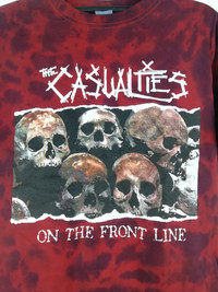 The Casualties Punk Band Tie Dye Size on tag : M Brand : Armpit to armpit : 19" Top to bottom : 28 " Material : Cotton Colour : Marron tie dye Condition : GOOD CONDITION