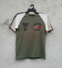 You can ask me any question before buying.. This is used clothing!! Please dont expected it to be like new or in pristine condition. Measures about (Approximately) : Japanes Brand THE WORLD Peace Size on tag : M Brand : Japanese Brand Armpit to armpit : 20" Top to bottom : 26 ” Material :Cotton Colour : Green Condition : GOOD CONDITION (lighting effect) Cost : $20 for Worldwide Shipping . Receiving the item within 14-21 business days. (COMBINED SHIPPING ACCEPTED) ----------------------------------------------- Payment : Accept "PAYPAL" Only Thank you very much for watching my item. Please visit my shop for other listing item. Thank you. REFUNDS Refunds Are Given Only If Items Are Not As Described. No Refunds For Wrong Sizes So Please Check And Compare Measurements To Something You Own Before Bidding. Most Of My Items Are Vintage/Used Items, So Please Check Pictures And Ask Questions. Thank You. 私の店を訪ねてくれてありがとう Grazie per aver visitato il mio negozio Merci de visiter mon magasin Gracias por visitar mi tienda