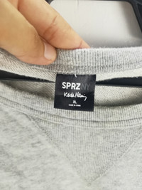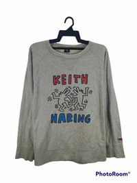 KEITH HARING Sweatshirt Size on tag : XL Brand : Keith Haring Armpit to armpit : 24" Top to bottom : 26 " Material : Cotton Colour : Grey Condition : GOOD CONDITION