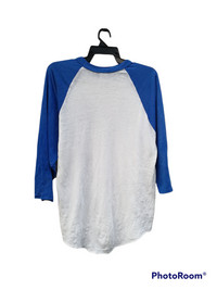 Vintage 1999 Grateful Dead Band Raglan Size on tag : M fit L Brand : Augusta Armpit to armpit : 21" fi Top to bottom : 27" Material : Cotton Colour : Blue /White Condition : GOOD CONDITION Ref : su