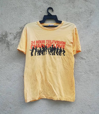 Vintage 24hour TELEVISION Size on tag : m Brand : 24 hour Armpit to armpit :18" Top to bottom : 25” Material :Cotton Colour : Yellow Condition :GOOD CONDITION 1hole