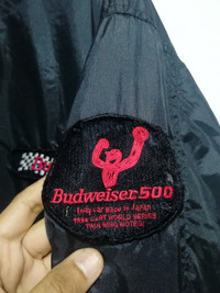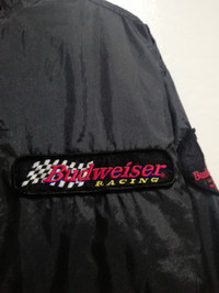 Vintage Budweiser Racing Jacket Size on tag : XL Brand : budweiser Armpit to armpit : 27. 5" Top to bottom : 29" Material : Polyester Colour : Black Condition : GOOD CONDITION