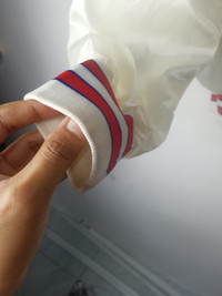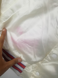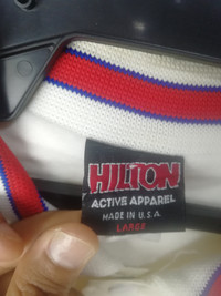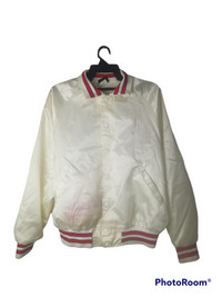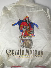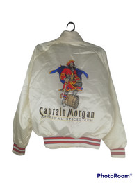 Vintage Captain Morgan Varsity Jacket Size on tag :L Brand : Hilton Armpit to armpit : 25. 5" Top to bottom : 26 " Material : Polyester /Nylon Colour : White Condition : GOOD CONDITION. Have red mark