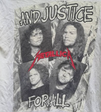 Vintage Metallica / And Justice For All Size on tag : M Brand : Brockum Armpit to armpit : 19" Top to bottom : 26. 5" Material :Cotton Colour : white Condition : GOOD CONDITION. ALL SINGLE STITCH #metallica #entersandman #vintagetees #vintagebandtees #vintagebandtee #grailed #grailedhq #foundongrailed #grailedfits #fashion #heroine #vintagemetallica