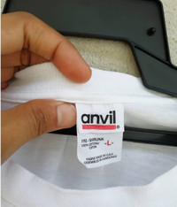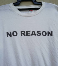 Vintage No Reason Band Size on tag : L Brand : Anvil Armpit to armpit : 21" Top to bottom : 29” Material :Cotton Colour : White Condition :GOOD CONDITION