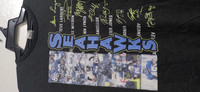 Vintage Seahawks NFL with signature player Size on tag : XL Brand : Delta Armpit to armpit : 23. 5" Top to bottom : 28" Material : Cotton Colour : Black Condition :GOOD CONDITION