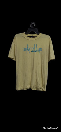 Vintage Umbrellas Band Size on tag : L Brand : jerzeesl Armpit to armpit : 22" Top to bottom : 27 " Material : Cotton Colour : cream Condition :GOOD CONDITION