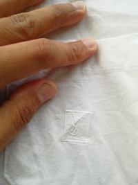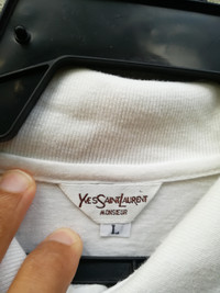 Vintage Yves Saint Lauren Size on tag : L fit M Brand : ysl Armpit to armpit : 20" Top to bottom : 25" Material : Cotton Colour : White Condition : GOOD CONDITION, minor stain Ref : su