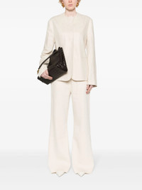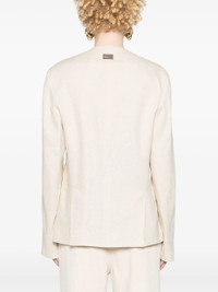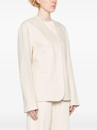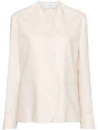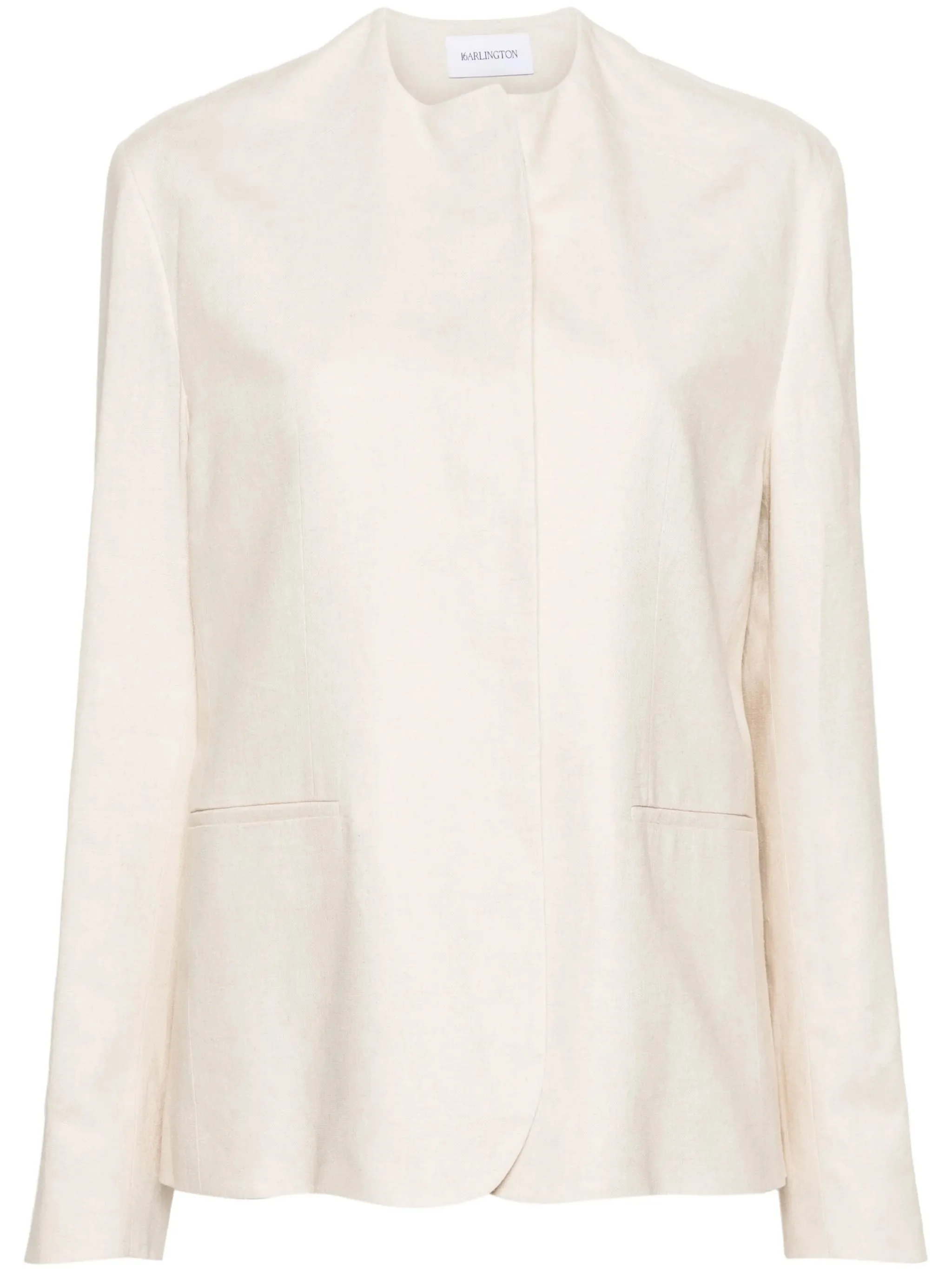 - light beige - round neck - concealed front press-stud fastening - long sleeves - two side welt pockets - full lining - English rear vents - straight hem Materials & Product Care Lining: viscose 100% Outer: Linen/Flax 45%, Rayon 55% Size & Fit - Designed for a slim fit that sits just away from the body offering a close yet comfortable fit - Made from a midweight non-stretch fabric - The vented hem offers movement at the rear - This piece fits true to size – take your usual size - The model is 1.75 m wearing size 8.