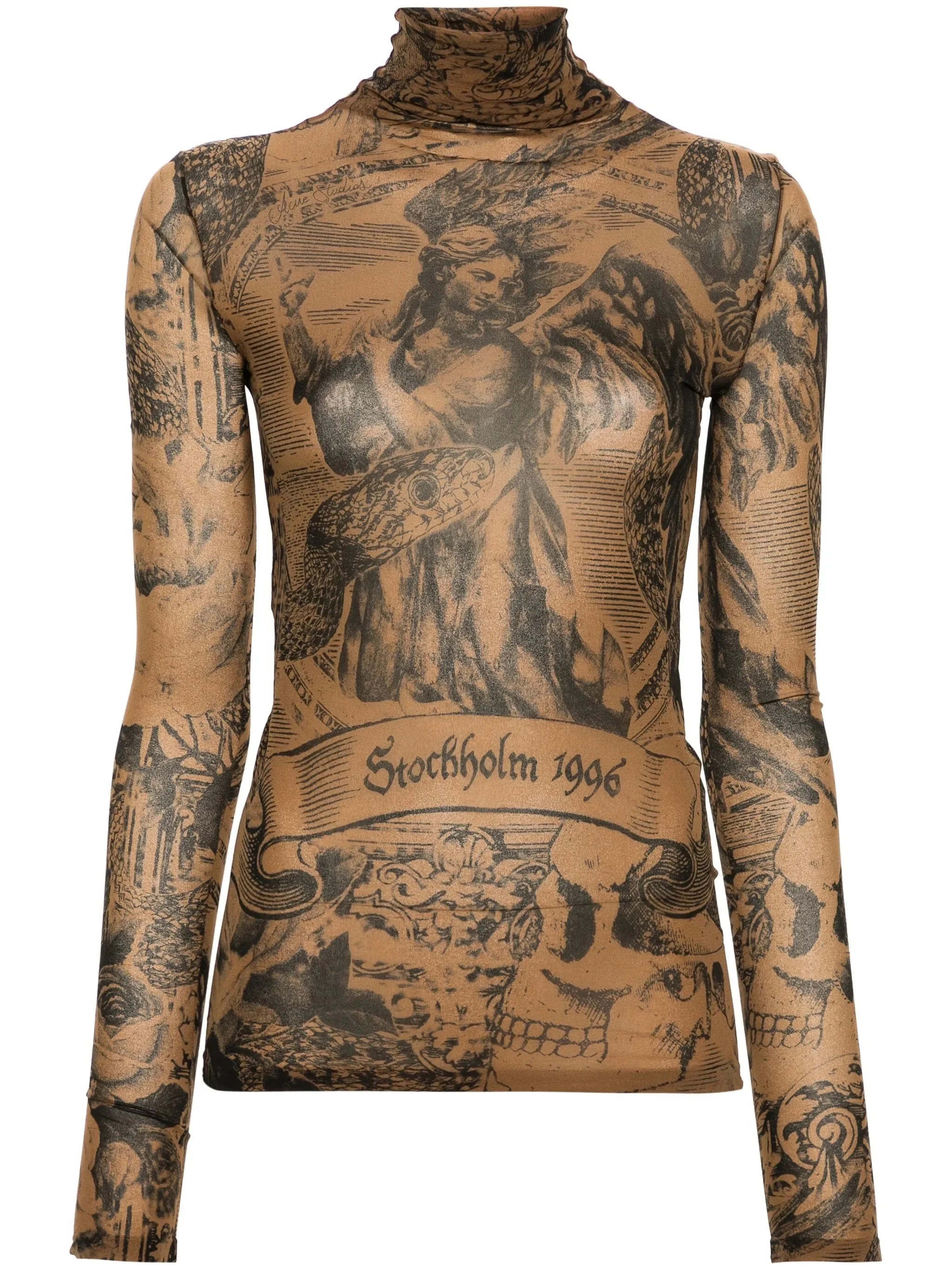 - camel brown/black - mesh design - all-over graphic print - mock neck - long sleeves - straight hem Materials & Product Care Nylon 100% Size & Fit - Designed for a close fit throughout - Made from a lightweight non-stretch fabric, this piece offers minimal elasticity when worn - This piece fits true to size – take your usual size - The model is 1.77 m wearing size S.