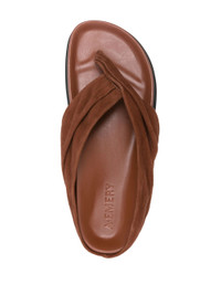 - Foliage brown - calf suede - slip-on style - pleat detailing - crossover strap detail - single toe strap - almond open toe - branded moulded footbed - flat rubber sole - This piece comes complete with a protective dust bag. Materials & Product Care Suede 100%