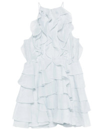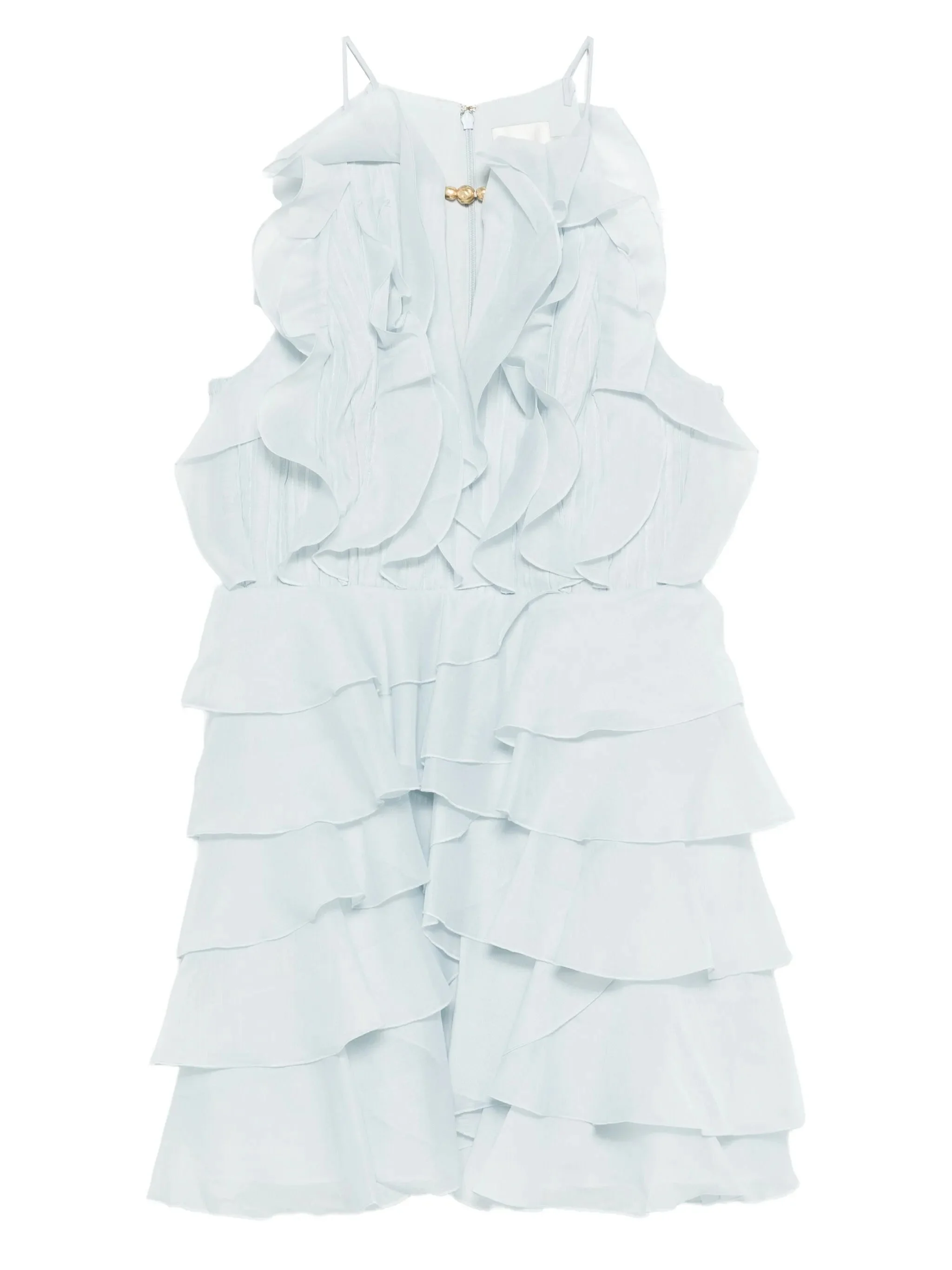 - blue - ruffled detail - tiered design - gold-tone embellishment - sleeveless - zip fastening Materials & Product Care Polyester 100%