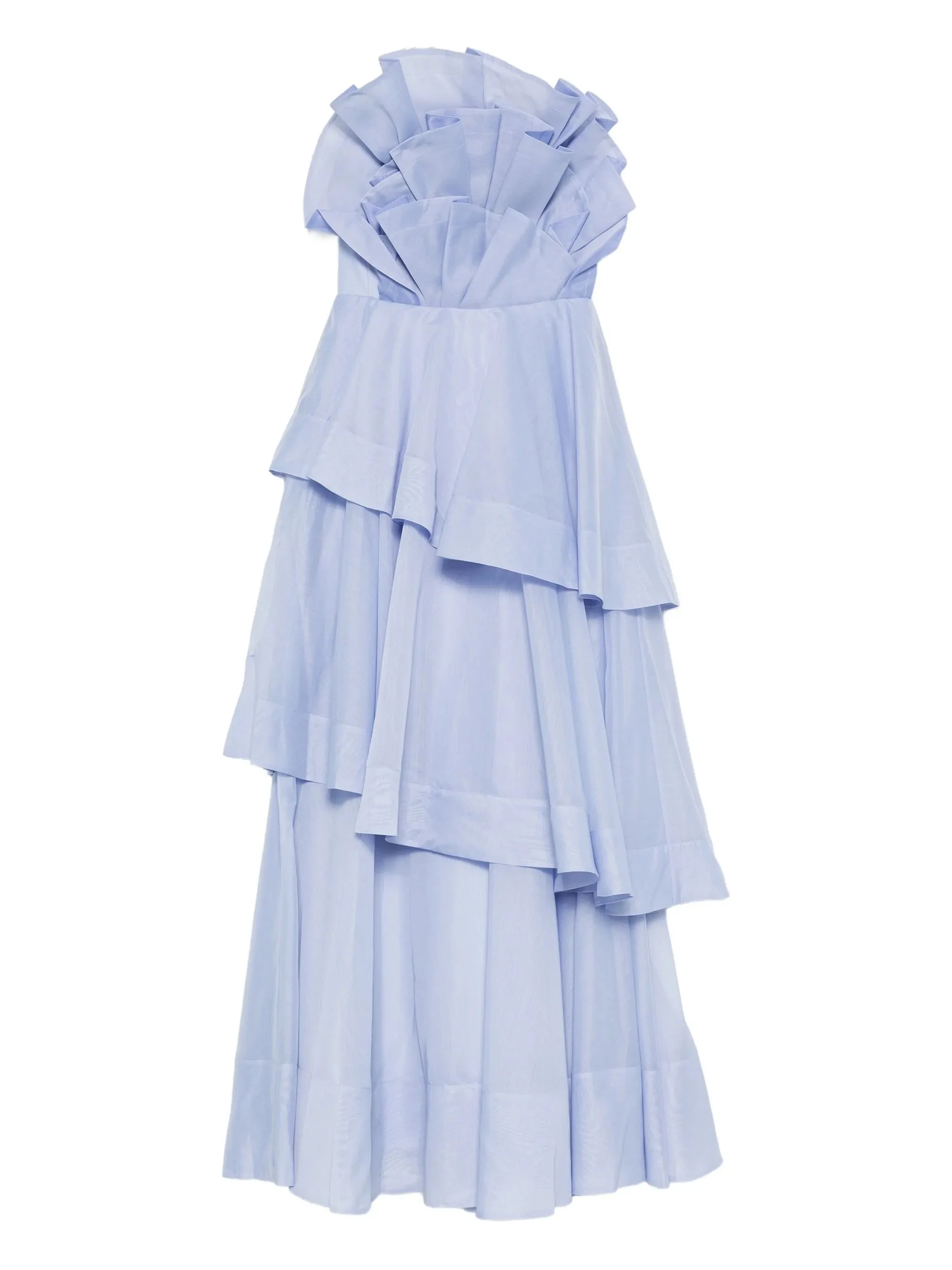 - pale blue - ruffled detail - tiered design - strapless - sleeveless Materials & Product Care Polyester 100%