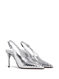 - silver-tone - buckle-fastening slingback strap - high stiletto heel - branded insole Materials & Product Care Lining: Calf Leather 100% Outer: Metallic Leather 100% Sole: Calf Leather 100%