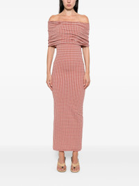 - clay red - off-shoulder - fitted waistline - straight hem Materials & Product Care Polyamide 75%, Spandex/Elastane 25% Size & Fit - Designed for a close fit throughout - Made from a midweight stretch fabric, this piece offers elasticity and flexibility when worn - The model is 1.78 m wearing size 36.