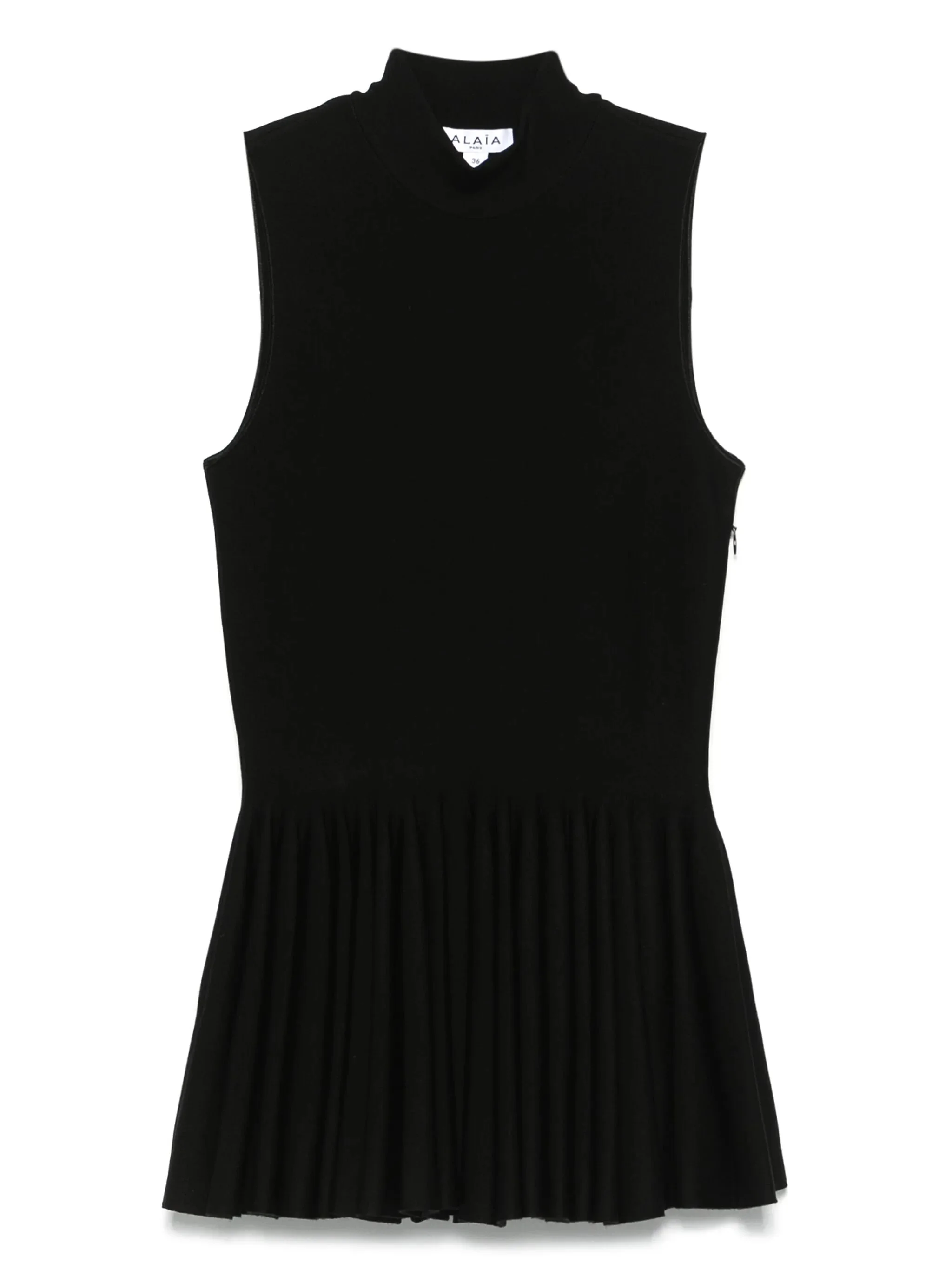 - black - concealed side zip fastening - mock neck - sleeveless - pleat detailing Materials & Product Care Synthetic > Elastane 2% Synthetic > Polyamide 7% Synthetic > viscose 48% Wool or fine animal hair > Wool 43% Size & Fit - Designed for a close fit at the chest and waist with a loose fit at the hip - Made with a midweight knit, this piece offers some stretch - The model is 1.75 m wearing size 36.